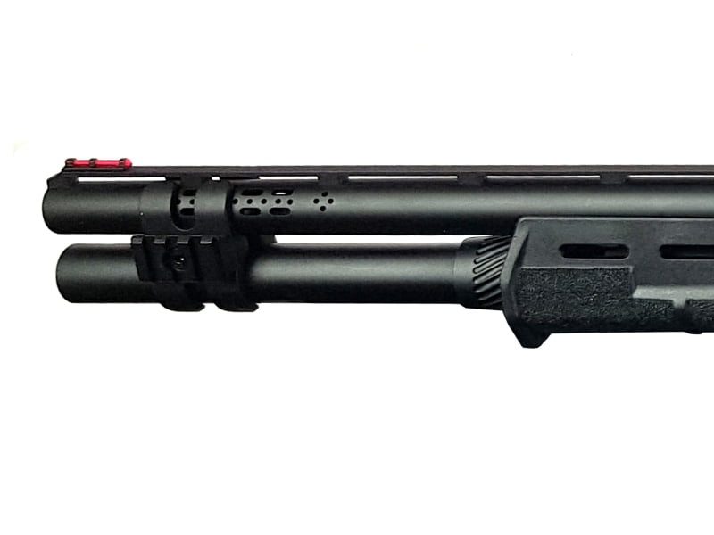The Salient Arms International by APS M870 Shotgun, model CAM MKII, showcases remarkable craftsmanship and advanced engineering. This shotgun features this innovative gas system that simplifies operation by allowing users to charge the bolt rather than individual shells.