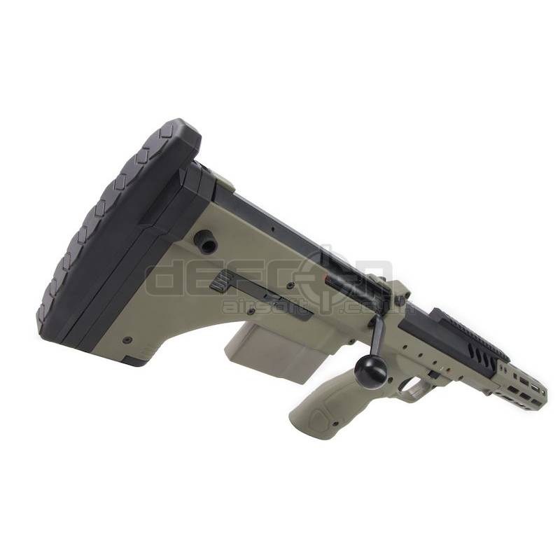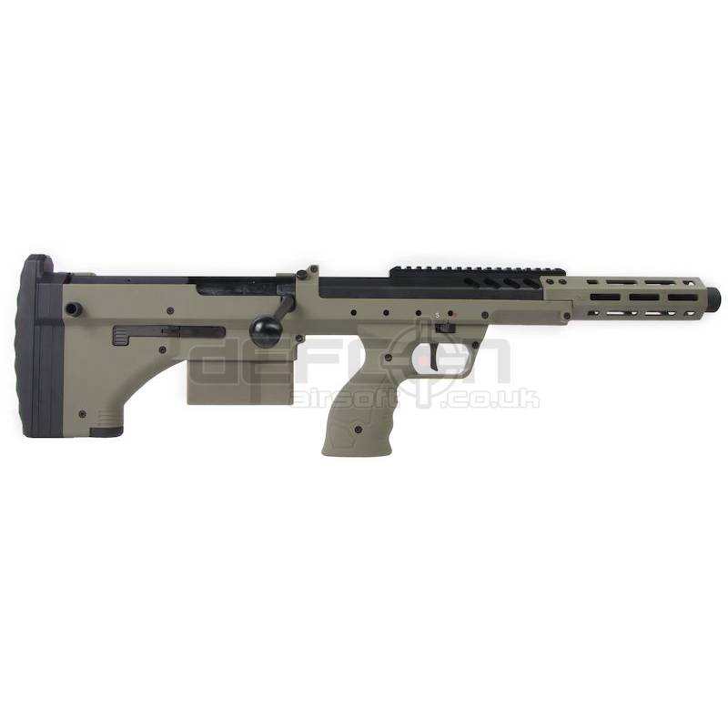 The Desert Tech SRS is an outstanding bullpup sniper rifle that has made waves both in the real steel world and in airsoft by their licensed manufacturer Silverback. The M2 denotation refers to their monolithic receiver.