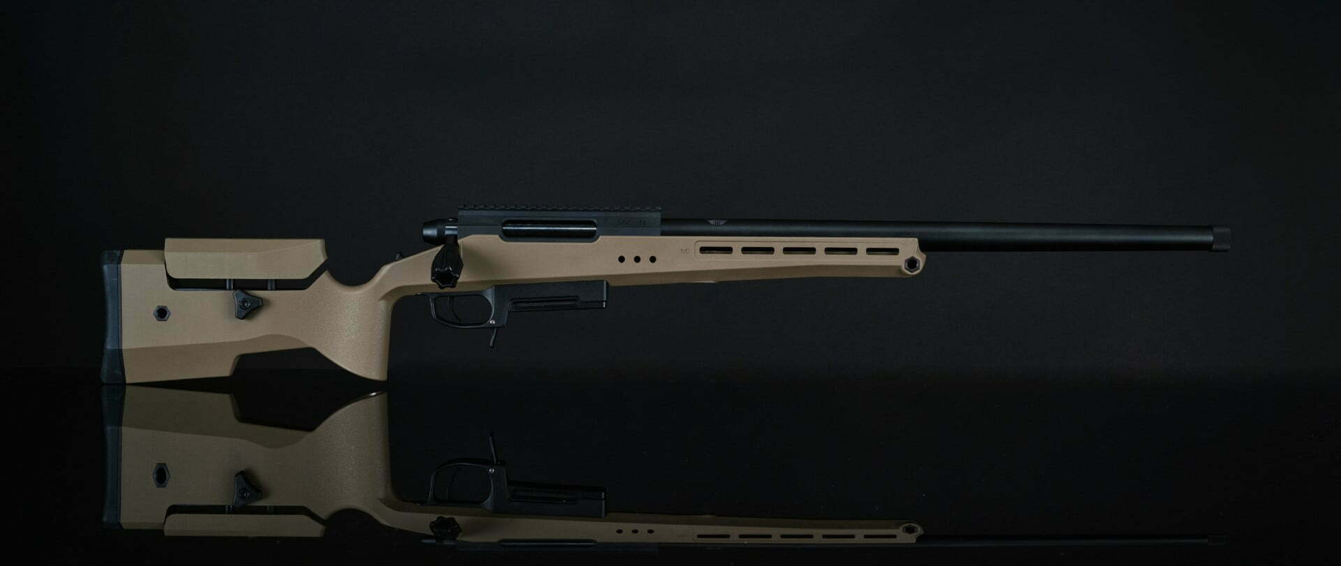 This is a fully ambidextrous design with a medium fluted barrel and Harris bipod adapter.