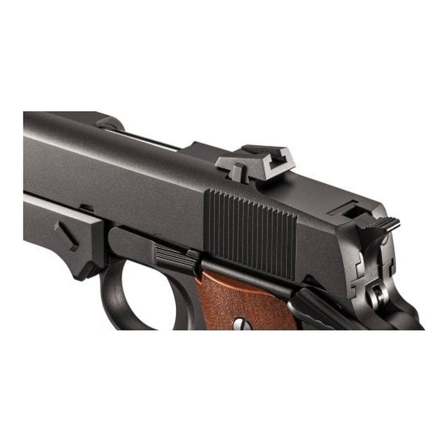 Custom iron sights: The widened rear sight and unique front profile improve the sight picture, consequently users gain faster target alignment.