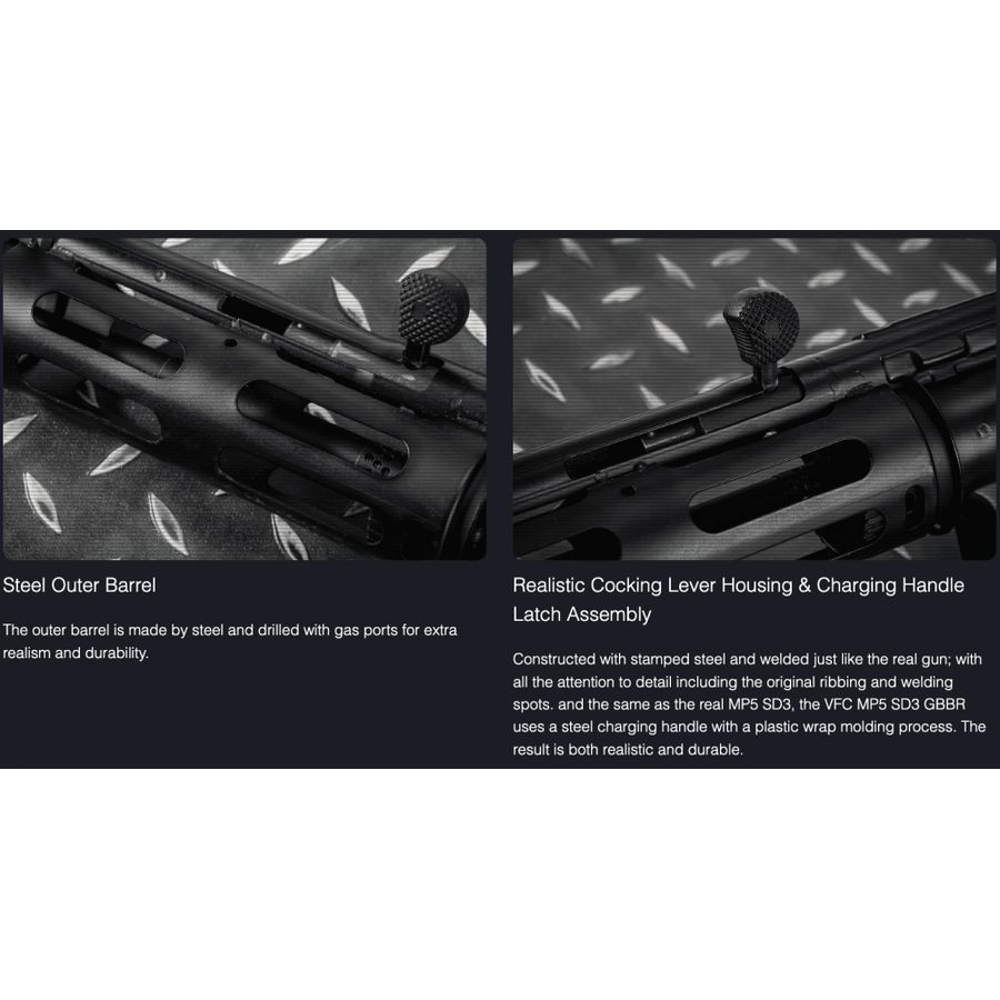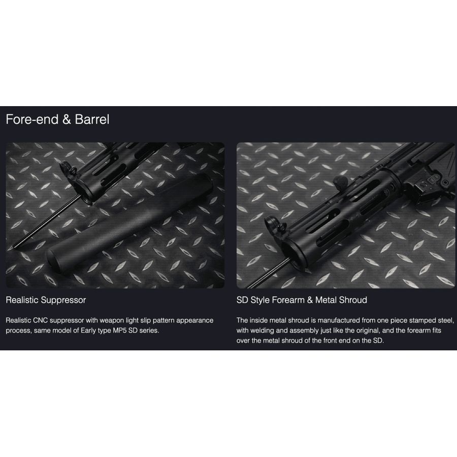 The UMAREX MP5 SD3 Early Type Gen.2 GBB SMG by VFC represents a key advancement in airsoft technology. This gas blowback rifle features a steel-stamped receiver that captures the essence of authentic military design, including realistic engravings and a SD handguard for added flair.