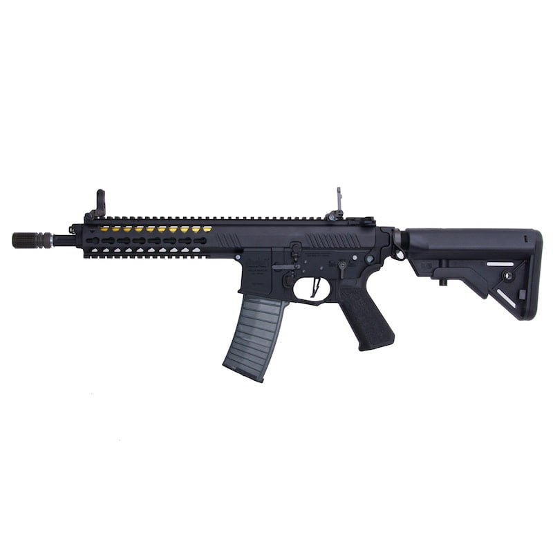 The VFC Avalon Gladius DX in Black offers a durable full metal construction and impressive Avalon engravings. Users can adjust the extendable Crane stock to suit their needs. This model features a 120 round KAC Style Mid capacity magazine.