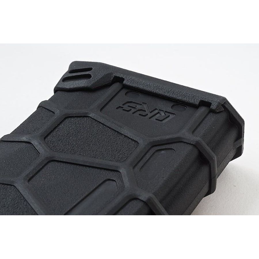 This magazine uses a diamond hexagonal rib structure, which enhances rigidity while increasing grip; therefore, users maintain secure handling even with gloves or in wet conditions. The strengthened floor plate supports faster extraction from pouches given its flared profile and robust construction.