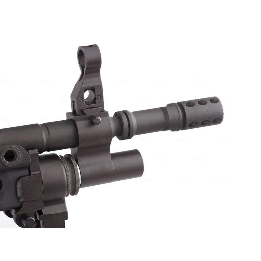 An intimidating weapon for your airsoft arsenal, the VFC M249 Gas Blowback Support Rifle is now available in sleek black. This gas-powered marvel reimagines the airsoft heavy machine gun experience with its impeccable craftsmanship and unparalleled attention to detail. Its a beast!