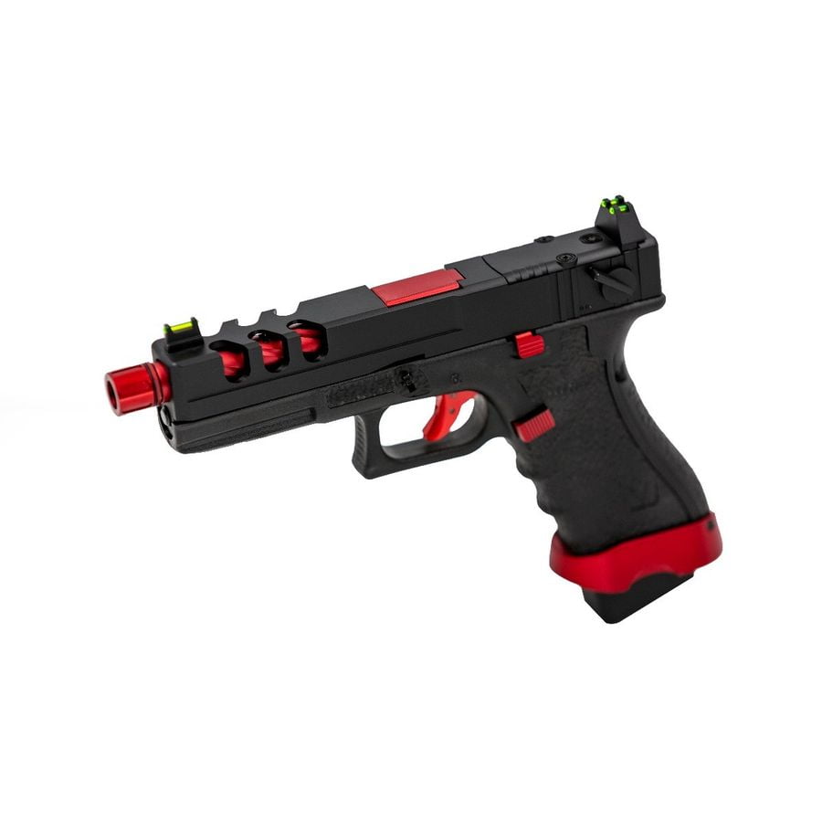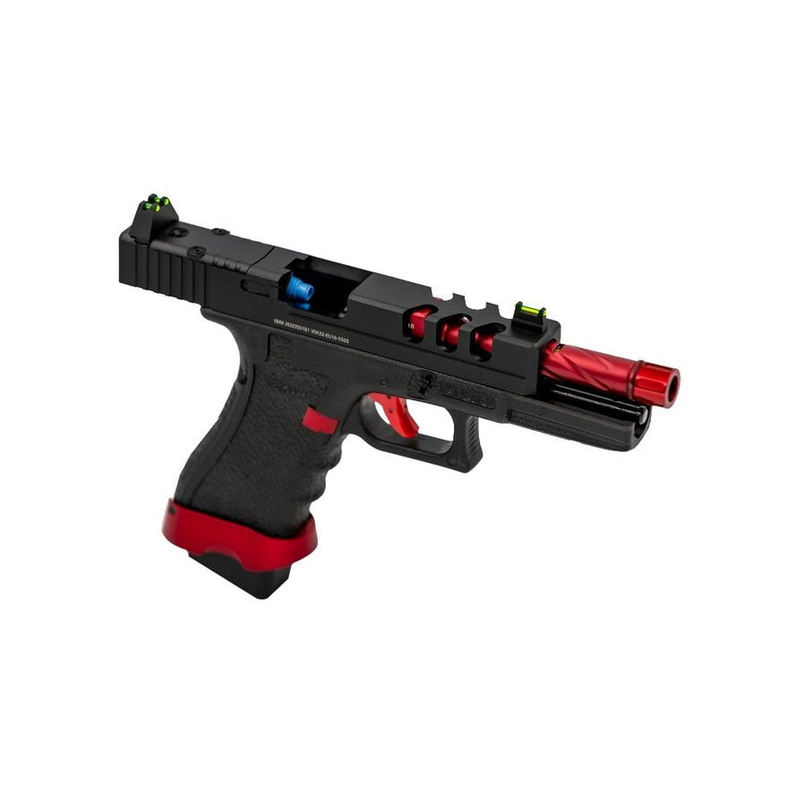 The Vorsk EU8 Vented Red MATCH features innovative design elements that set it apart in the airsoft market.