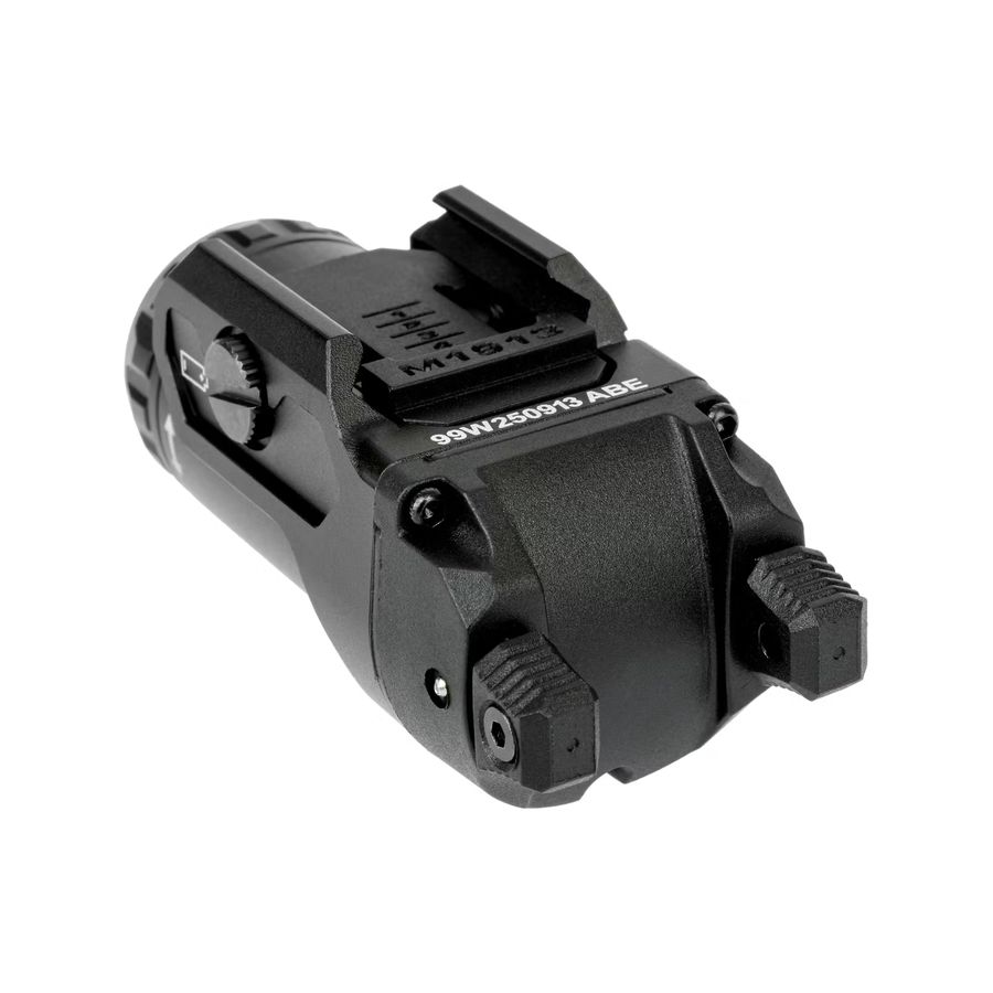 Ambidextrous rocker controls provide instant activation, as minimal movement improves response time under pressure. Multiple lighting modes enhance versatility, whilst the lockout bezel prevents accidental discharge, thus maintaining operational control.