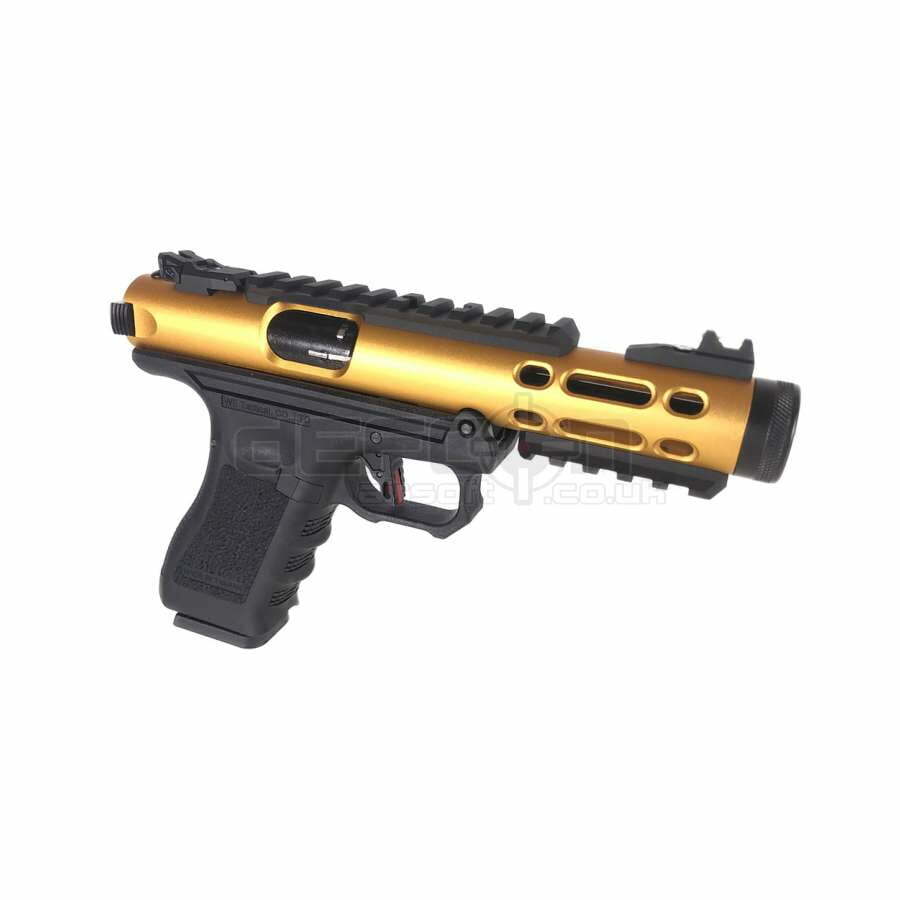 Following the ever growing popularity of the Action Army AAP-01 WE have joined the action with their new Galaxy G-series pistol range. They have introduced there stylish take on a Ruger/Glock mash up adding what can only be described as a little race gun flair into the mix.